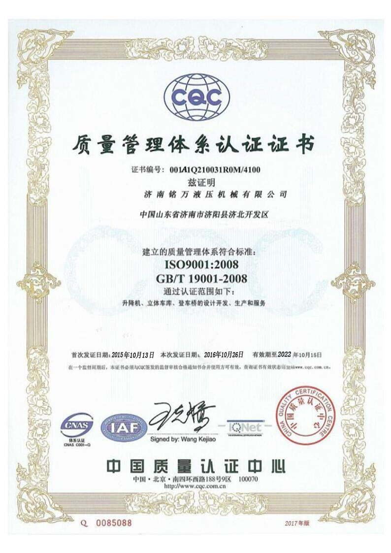 +濟南銘萬液壓機械有限公司【原濟南機械廠】,是全國制造液壓升降機、升降平臺的廠家,產品有八大系列六十多個品種,規(guī)格齊全、質量穩(wěn)定、安全可靠、方便快捷;產品銷往全國各地,深受用戶好評。升降機廠家技術力量雄厚,產品設計先進、工藝成熟、實驗檢測手段完善,“質量第一,用戶至上”是我們的宗旨。 本公司采用先進的管理手段,嚴密的質量監(jiān)控體系和良好的售后服務隊伍為我們的產品走向市場創(chuàng)造......